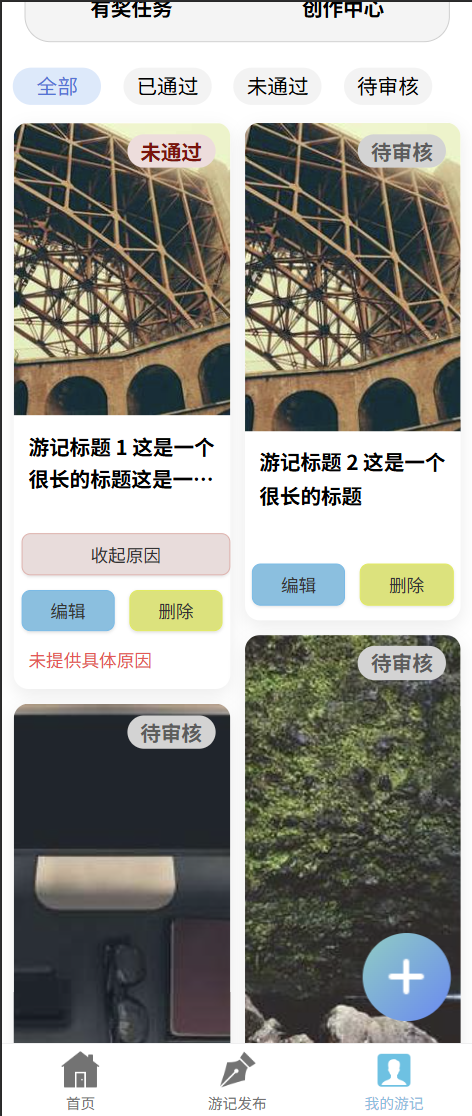 - 用户端首页采用两列瀑布流布局,动态计算盒子高度