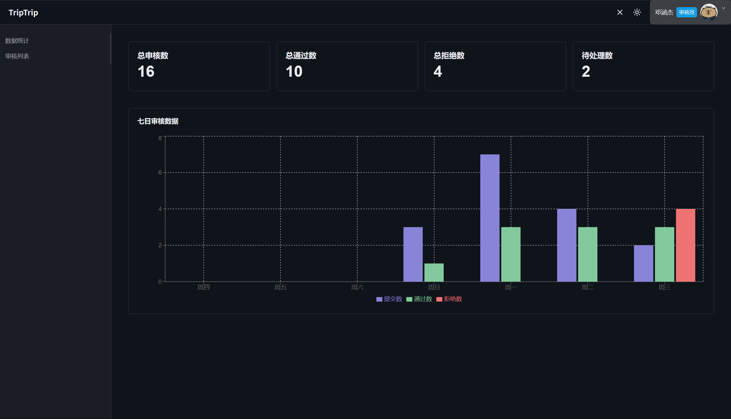 - 管理端对审核数据进行可视化统计,方便管理人员查看