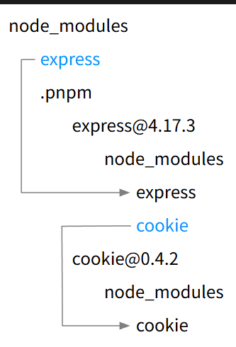 // express的依赖都软链至了node_modules/.pnpm/中的对应目录