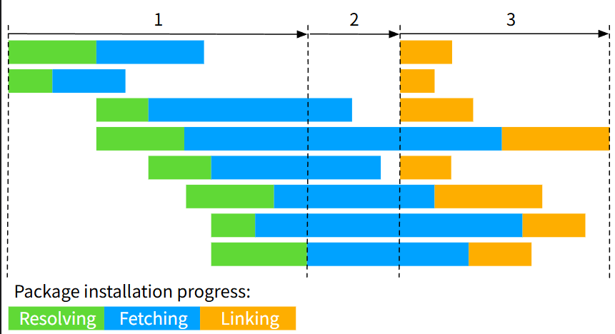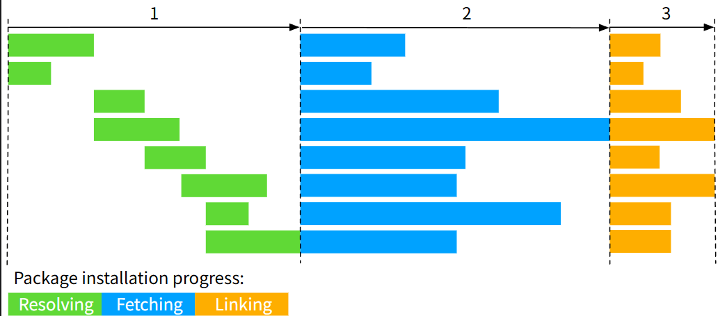 传统的三阶段:解析依赖,获取所有依赖,写入所有依赖到项目目录