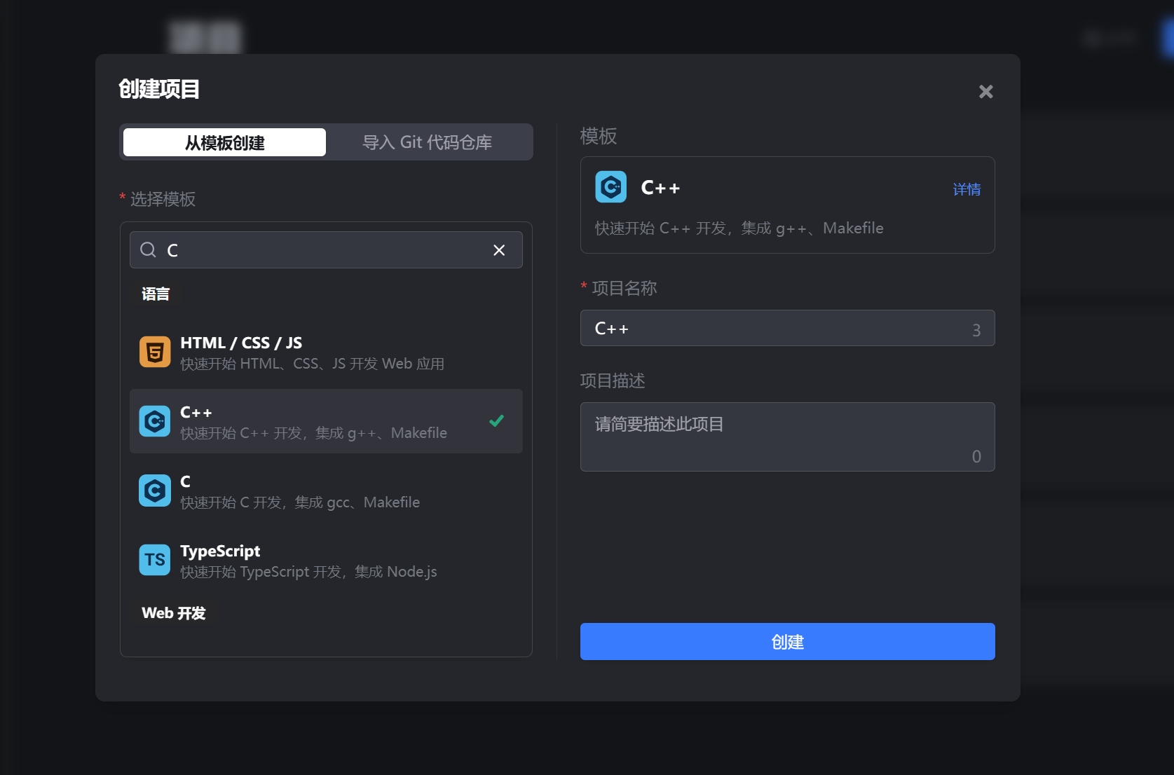 选择创建一个C++项目